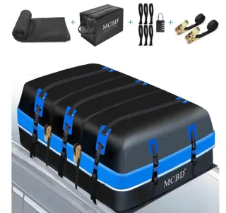 Cofre de Techo, 1132L Bolsa de Techo Grande Impermeable de Caparazón Blando con 2 Correas de Trinquete 10 Correas Reforzadas 6 Ganchos de Puerta para SUV Furgoneta con/sin Baca, Azul Cofre de techo de gran capacidad para transportar equipaje adicional en tu vehículo. - Capacidad de 1132 litros. - Diseño en color negro y azul. - Incluye alfombrilla antideslizante. - Bolsa de almacenamiento. - Juego de 4 correas de sujeción. - Candado de combinación.