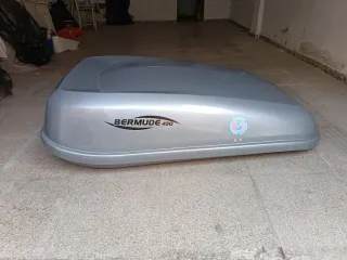 Cofre de techo coche bermudas 410 con barras para montar ya completo tiene poquitas rayadura a lo mejor se ve un poco en la foto puedo llevar yo si no es muy lejos