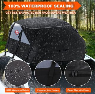Cofre de techo plegable Sailnovo con gran capacidad de 20 pies cúbicos, ideal para ampliar el espacio de carga en viajes, vacaciones o escapadas. Fabricado con material impermeable mejorado para proteger el equipaje de lluvia, polvo y suciedad. Incluye alfombrilla antideslizante que aporta mayor estabilidad y seguridad durante la conducción. Apto para coches sin portaequipajes, fácil de instalar y guardar cuando no se usa. Diseño en color gris y negro, resistente y práctico para transportar maletas, bolsas y material voluminoso.