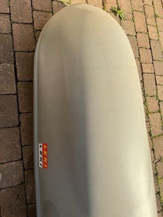 Cofre portaequipajes Thule Ocean 200, ideal para transportar equipaje adicional en tus viajes. Tiene un golpe pero está correctamente reparado con fibra. Se puede usar sin problema. - Color gris. - Diseño aerodinámico.