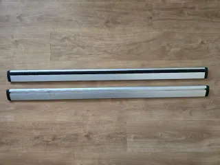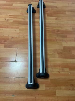 Barras de techo Thule WingBar de aluminio – 135 cm (juego de 2). 🔹 Presentan marcas normales de uso, sin afectar a su funcionamiento. 🔹 Una de las barras incluye goma, la otra no la lleva (ver fotos). Ideales para montar portabicicletas, cofres de techo o portaesquís. Resistentes, ligeras y aerodinámicas. 📦 Hago envío. 📍 Entrega en mano posible, según horario, en Castellbisbal, Barcelona, Molins de Rei, Sant Joan Despí o Puigcerdà.