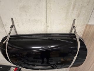 Cofre de techo original de Porsche Cayenne Macan Panamera 911 (Solo cuatro usos) Con llave y apertura por ambos lados. Largo 226 Ancho 80 Alto 28 Ideal para Skis o tablas de Snow - Diseño aerodinámico. - Acabado negro brillante. - Amplia capacidad de carga. Están incluidas las barras de techo transversales. Las longitudinales no porque esas van fijas en cada coche. Precio Ya lo he rebajado. Por ahora NO negociable.