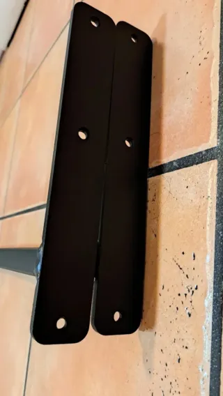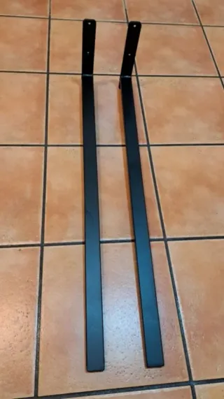 Se venden dos soportes de metal negro para almacenamiento cofre portaequipaje. -Se montan el la pared;garaje, terasa, pasillo, trastero, etc. - Color: Negro mate - Material: Metal - Diseño: Recto con base para fijación