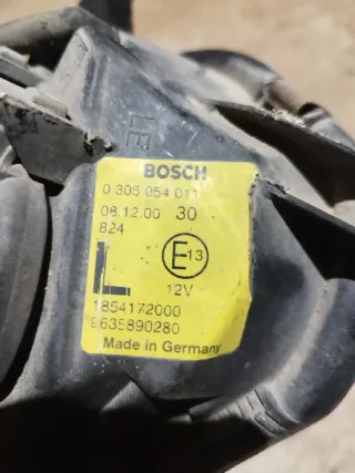 Vendo focos antiniebla BOSCH originales, en buen estado, procedentes de vehículo desmontado. Producto original BOSCH, no réplica. 🔹 Marca: BOSCH 🔹 Referencia BOSCH: 0 305 054 011 🔹 Referencia fabricante vehículo: 6358 90280 🔹 Voltaje: 12V 🔹 Homologación: E13 🔹 Fabricación: Made in Germany Ideales como recambio si tienes uno roto o deteriorado. Se venden tal cual se ven en las fotos. 🚗 Modelos compatibles (según referencias BOSCH / PSA) Estos focos antiniebla se montan en varios modelos del grupo Peugeot / Citroën, normalmente en versiones de