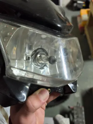 Careta frontal para motocicleta con bombillas incluidas. Diseñada para ofrecer una muy buena iluminación y estética, sobre todo en ciclomotores. Doy una bombilla aparte. Precio en tienda 67€, adaptable para motos de Cross y enduro Yamaha. - Color negro brillante. - Diseño aerodinámico. - Incluye bombillas.