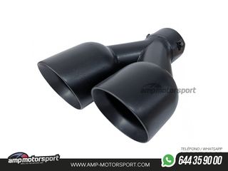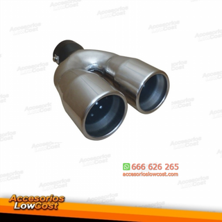 Embellecedor de doble salida para tubo de escape. - Acabado cromado brillante en las puntas. - Cuerpo principal en color negro mate. - Fabricado en acero inoxidable.