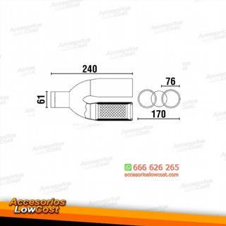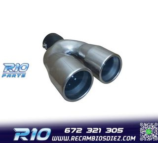 Móvel: 672 321 332 - Referencia: ESC000316. COLA ESCAPE DOBLE REDONDA Especificaciones: Modelo: Doble redonda Material: Acero inoxidable Medida: 240 mm (largo) 170 mm (ancho) Diámetro de entrada: 60 mm Montaje. Instalación sencilla, sujección mediante tornillo o punto de soldadura Imagen. Dale un toque más deportivo al vehículo con esta cola de escape