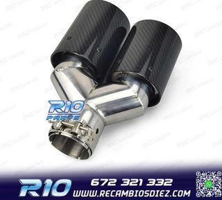 Móvil: 664 856 320 - Referencia: CRC011792. COLA ESCAPE DOBLE BMW M PERFORMANCE CARBONO CROMO IZQ Especificaciones: Modelo: Look M Performance Lado de montaje: Izquierda Tipo de salida: Doble Color: Cromo / Carbono Diámetro de entrada: Interior: 60 mm Exterior: 63 mm Diámetro cada salida exterior: 89 mm Largo: 250 mm Ancho total: 192 mm Montaje. Fácil instalación sin modificar nada en el vehículo. Kit completo. Incluye las 2 colas de escape listas para instalar. Estos no son productos originales de la marca BMW. El artículo ofrecido, solo es compatible para los modelos de vehí