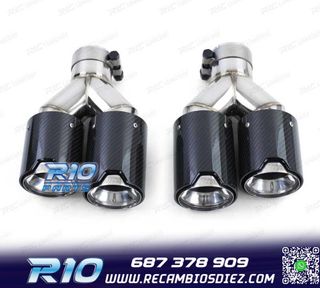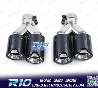Referencia: AMP12760 COLAS ESCAPE CARBONO BMW LOOK M PERFORMANCE COLAS ESCAPE DOBLES EN CADA LADO En carbono Material: acero inoxidable hacia el lado izquierdo y derecho 2x tubo doble Recubierto con CARBONO REAL Diámetro de conexión: 63 mm - Aspecto mejorado y deportivo. - Fácil instalación mediante abrazadera de escape (incluida) - muy buena calidad - Ajuste absolutamente perfecto - Incluye abrazaderas de banda ancha para una fácil conversión sin soldadura AMP MOTORSPORT. Profesionalidad y seriedad, con un gran catálogo online en nuestra web. Todo nuestros artículos son de fabricación nueva y gozan de una garantía de 2 años....