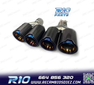Móvil: 664 856 320 - Referencia: ESC010203. COLAS ESCAPE BMW LOOK M PERFORMANCE AZUL CARBONO Especificaciones: Modelo: Look M Performance Lado de montaje: Ambos lados Tipo de salida: Doble Color: Azul / Carbono Diámetro de entrada: Interior: 60 mm Exterior: 63 mm Diámetro cada salida exterior: 89 mm Largo: 250 mm Ancho total: 190 mm Montaje. Fácil instalación sin modificar nada en el vehículo. Kit completo. Incluye las 2 colas de escape listas para instalar. Estos no son productos originales de la marca BMW. El artículo ofrecido, solo es compatible para los modelos de veh?