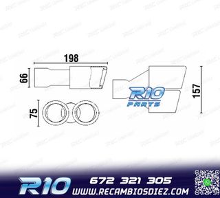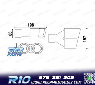 Móvel: 672 321 305 - Referencia: ESC010006. COLA ESCAPE DOBLE REDONDA ACERO INOX Especificaciones: Modelo: Doble redonda Material: Acero inoxidable Diámetro de entrada: 66 mm interior / 68 mm exterior Diámetro de salida: 75 mm Lado más largo: 198 mm Lado más corto: 175 mm Montaje. Instalación sencilla, sujección mediante tornillo o punto de soldadura. Imagen. Dale un toque más deportivo al vehículo con esta cola de escape.