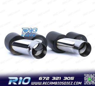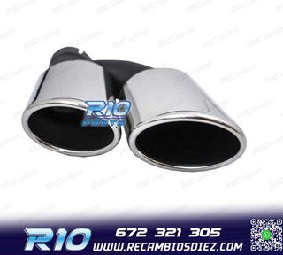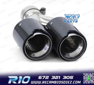 Móvel: 672 321 305 - Referencia: CRC011131. COLAS ESCAPE BMW LOOK M PERFORMANCE CROMO CARBONO Especificaciones: Modelo: Look M Performance Lado de montaje: Ambos lados Tipo de salida: Doble Color: Cromo / Carbono Diámetro de entrada: Interior: 60mm Exterior: 63mm Otras dimensiones: Diámetro cada salida exterior: 89mm Largo: 250mm Ancho total: 190mm Montaje. Fácil instalación sin modificar nada en el vehículo. Kit completo. Incluye las 2 colas de escape listas para instalar. Estos no son productos originales de la marca BMW. El artículo ofrecido, solo es compatible para