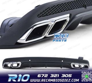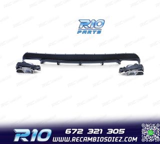 Móvel: 672 321 305 - Referencia: RLC010339. DIFUSOR MERCEDES C W205 14-18 LOOK AMG C63 + COLAS ESCAPE Compatible con: Mercedes Clase C W205 (2014-2018) Sedan Solo para modelos con parachoques normal No válido para paragolpes AMG Especificaciones: Modelo: Look C63 AMG Material: Plástico ABS PDC (Perforación para sensores de estacionamiento): Sí Salida de escape: Doble a ambos lados Incluye: Difusor + Colas de escape dobles Montaje. Fácil instalación, con los mismos accesorios originales ABS. Fabricado en plástico de alta calidad con gran resistencia y durabilidad Estilo. Dale a