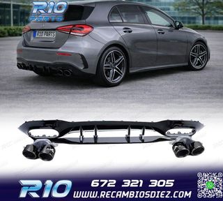 Móvel: 672 321 305 - Referencia: CRC010549. DIFUSOR MERCEDES CLASE A W177 18- A45 LOOK AMG NEGRO BRILLO + COLAS ESCAPE Compatible con: Mercedes Clase A W177 (2018-) Solo para modelos con paragolpes AMG Line Especificaciones: Modelo: Look AMG A45 Material: Plástico ABS Salida de escape: doble a ambos lados Incluye: Difusor / Colas de Escape Montaje. Fácil instalación, con los mismos accesorios originales. ABS. Fabricado en plástico de alta calidad con gran resistencia y durabilidad. Estilo. Dale a tu vehículo un aspecto más moderno con este difusor depor