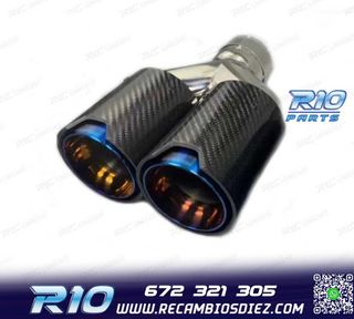 Móvel: 672 321 305 - Referencia: ESC010203. COLAS ESCAPE BMW LOOK M PERFORMANCE AZUL CARBONO Especificaciones: Modelo: Look M Performance Lado de montaje: Ambos lados Tipo de salida: Doble Color: Azul / Carbono Diámetro de entrada: Interior: 60 mm Exterior: 63 mm Diámetro cada salida exterior: 89 mm Largo: 250 mm Ancho total: 190 mm Montaje. Fácil instalación sin modificar nada en el vehículo. Kit completo. Incluye las 2 colas de escape listas para instalar. Estos no son productos originales de la marca BMW. El artículo ofrecido, solo es compatible para los modelos de veh?