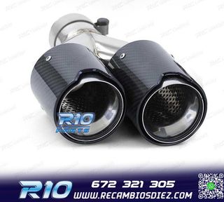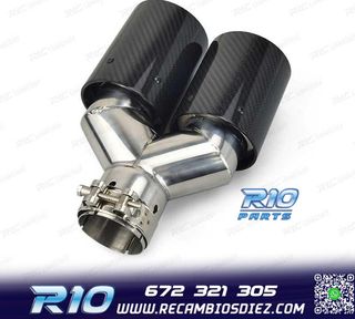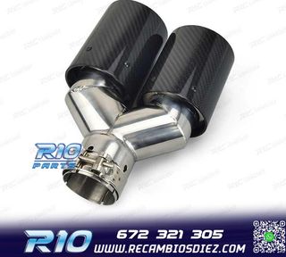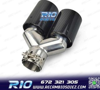 Móvel: 672 321 305 - Referencia: CRC011792. COLA ESCAPE DOBLE BMW M PERFORMANCE CARBONO CROMO IZQ Especificaciones: Modelo: Look M Performance Lado de montaje: Izquierda Tipo de salida: Doble Color: Cromo / Carbono Diámetro de entrada: Interior: 60 mm Exterior: 63 mm Diámetro cada salida exterior: 89 mm Largo: 250 mm Ancho total: 192 mm Montaje. Fácil instalación sin modificar nada en el vehículo. Kit completo. Incluye las 2 colas de escape listas para instalar. Estos no son productos originales de la marca BMW. El artículo ofrecido, solo es compatible para los modelos de vehí