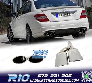 Móvel: 672 321 305 - Referencia: RLC010576. COLAS ESCAPE ESPECIFICA MERCEDES CLASE C W204 07-15 LOOK AMG C63 50x125 Valido para: Mercedes Benz Clase C W204 (2007-2015) Sedan / Coupe Especificaciones: Modelo: Look AMG C63 Lado de montaje: Ambos lados Tipo de salida: Doble Acero inox Color: Cromo Medidas: Largo: 260mm Ancho: 240 mm Diametro del tubo terminal: 62 mm Montaje. Fácil instalación sin modificar nada en el vehículo. Kit completo. Incluye las 2 colas de escape listas para instalar. Estos no son productos originales de la marca MER