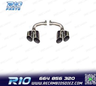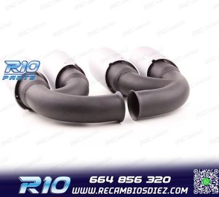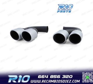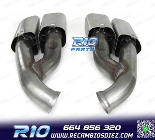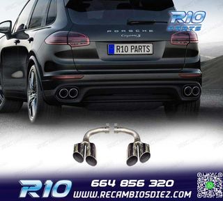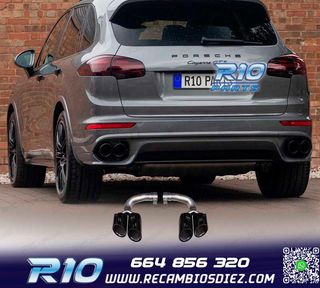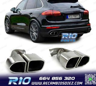 Móvil: 664 856 320 - Referencia: ESC010212. COLAS ESCAPE PORSCHE CAYENNE V8 GTS TURBO S 10-14 PLATA MATE Válido para: Porsche Cayenne S V8 (294 kW/400 hp) Porsche Cayenne GTS V8 (309 kW/420 hp) Porsche Cayenne Tubo V8 (368 kW/500 hp) Porsche Cayenne Turbo S V8 (405 kW/550 hp) Tipo 92A Solo para Pre Facelift 05/2010-09/2014 Especificaciones: Modelo: Look GTS Lado de montaje: Ambos lados Tipo de salida: 2 X Doble Color: PLATA MATE Montaje. Fácil instalación sin modificar nada en el vehículo. Kit completo. Incluye las 2 colas de escape listas para instalar. Estos no son productos