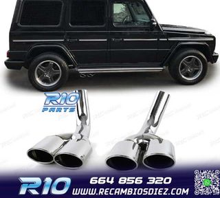 Móvil: 664 856 320 - Referencia: ESC010009. COLA ESCAPE MERCEDES G W463 89- LOOK AMG G500 G55 Compatible con: Mercedes Clase G W463 G55 (1989-) Especificaciones: Modelo: Look AMG Lado de montaje: Ambos lados Tipo de salida: Doble Color: Cromo Medidas: Longitud [mm]: 440 Longitud [mm]: 60 Montaje. Fácil instalación sin modificar nada en el vehículo. Kit completo. Incluye las 2 colas de escape listas para instalar. Estos no son productos originales de la marca MERCEDES. El artículo ofrecido, solo es compatible para los modelos de vehículos descritos.