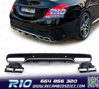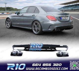 DIFUSOR TRASERO CON COLAS DE ESCAPE CROMADAS MERCEDES CLASE C W205 LOOK C63 AMG