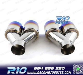 Móvil: 664 856 320 - Referencia: ESC010204. KIT ESCAPE CON COLAS BMW F10 F11 F12 F13 LOOK M PERFORMANCE DOBLE Válido para: BMW Serie 5 F10 F11 (2010-2017) BMW Serie 6 F12 F13 (2011-2018) Especificaciones: Look M Performance Modelo: Doble redonda a ambos lados (-OO-----OO-) Material: Fabricado en acero inoxidable 304 de alta calidad Entrada: conexion al tubo original Montaje. Instalación sencilla, sujección mediante tornillos. Imagen. Dale un toque más deportivo al vehículo con esta cola de escape. Estos no son productos originales de la marca BMW. El artículo ofrecido, solo e