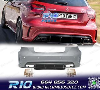 Móvil: 664 856 320 - Referencia: CRC012048. PARAGOLPES TRASERO MERCEDES CLASE A W176 A45 12-18 LOOK AMG + COLAS ESCAPE Válido para: Mercedes Clase A W176 A45 (2012-2018) Para la versión Standard y A45 Especificaciones: Modelo: Look AMG Material: Plástico ABS PDC (Agujero para sensores de aparcamiento): Sí (preperforación) Incluye: Difusor / Soportes / Colas de escape doble / Embellecedores Paragolpes listo para pintar Montaje. Instalación sencilla, directamente en los anclajes originales del vehículo. ABS. Fabricado en plástico de alta calidad para asegurar resistencia y larg