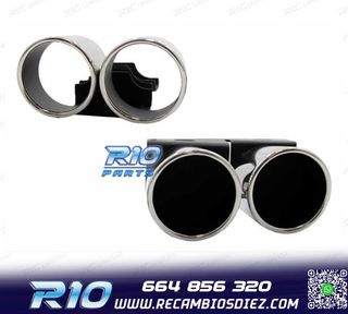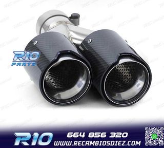 Móvil: 664 856 320 - Referencia: CRC011792. COLA ESCAPE DOBLE BMW M PERFORMANCE CARBONO CROMO IZQ Especificaciones: Modelo: Look M Performance Lado de montaje: Izquierda Tipo de salida: Doble Color: Cromo / Carbono Diámetro de entrada: Interior: 60 mm Exterior: 63 mm Diámetro cada salida exterior: 89 mm Largo: 250 mm Ancho total: 192 mm Montaje. Fácil instalación sin modificar nada en el vehículo. Kit completo. Incluye las 2 colas de escape listas para instalar. Estos no son productos originales de la marca BMW. El artículo ofrecido, solo es compatible para los modelos de vehí