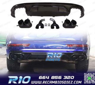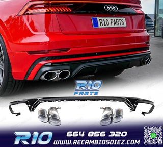 DIFUSOR AUDI Q8 18-23 LOOK SQ8 NEGRO + COLAS ESCAPE CROMO