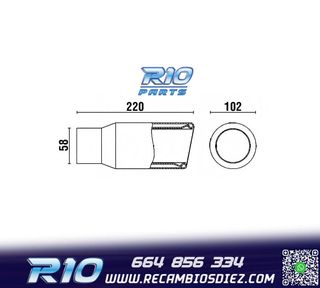 Móvil: 664 856 334 - Referencia: ESC000250. COLA ESCAPE REDONDA 102MM ACERO INOX Especificaciones: Modelo: Redonda Material: Acero inoxidable Medida: 220 mm (largo), 102 mm (ancho) Diámetro de entrada: 60 mm Montaje. Instalación sencilla, sujección mediante tornillo o punto de soldadura. Imagen. Dale un toque más deportivo al vehículo con esta cola de escape.