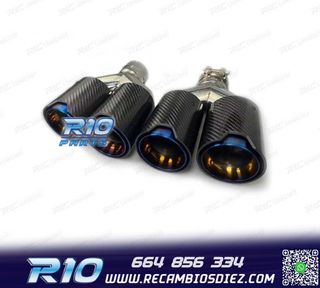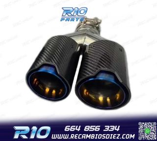 Móvil: 664 856 334 - Referencia: ESC010203. COLAS ESCAPE BMW LOOK M PERFORMANCE AZUL CARBONO Especificaciones: Modelo: Look M Performance Lado de montaje: Ambos lados Tipo de salida: Doble Color: Azul / Carbono Diámetro de entrada: Interior: 60 mm Exterior: 63 mm Diámetro cada salida exterior: 89 mm Largo: 250 mm Ancho total: 190 mm Montaje. Fácil instalación sin modificar nada en el vehículo. Kit completo. Incluye las 2 colas de escape listas para instalar. Estos no son productos originales de la marca BMW. El artículo ofrecido, solo es compatible para los modelos de veh?