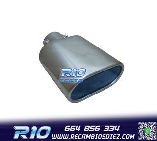 Móvil: 664 856 334 - Referencia: ESC010312. COLA ESCAPE OVALADA ACERO INOX Especificaciones: Modelo: Ovalada Material: Acero inoxidable Medida: 242mm (largo), 137mm (ancho) Diámetro de entrada: 60mm Montaje. Instalación sencilla, sujección mediante tornillo o punto de soldadura. Imagen. Dale un toque más deportivo al vehículo con esta cola de escape.