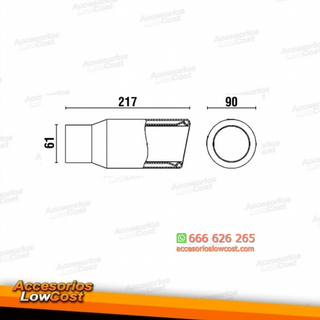 REF: AL001973 Embellecedor escape universal fabricada en acero inoxidable da alta calidad. (modelo 08). Validas para todos modelos: alfa romeo,audi, bmw, citroen, Fiat, Ford, Honda, jeep, mercedes, opel,peugeot, porsche, renault, seat, skoda, vw, subaru, toyota. Instalación sencilla, sin modificación alguna del vehículo. Medidas: Diámetro entrada: 58 interior / 60 exterior mm. Diametro:salida: 90mm. Largo total: 217mm. Fabricación alemana, garantía 100%. COLA ESCAPE ACERO INOXIDABLE. DIAMETRO SALIDA 90mm.