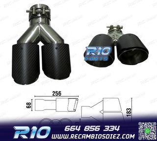 Móvil: 664 856 334 - Referencia: CRC011308. COLA ESCAPE DOBLE BMW M PERFORMANCE CARBONO CROMO DCH Especificaciones: Modelo: Look M Performance Lado de montaje: Derecha Tipo de salida: Doble Color: Cromo / Carbono Diámetro de entrada: Interior: 60 mm Exterior: 63 mm Diámetro cada salida exterior: 89 mm Largo: 250 mm Ancho total: 192 mm Montaje. Fácil instalación sin modificar nada en el vehículo. Kit completo. Incluye las 2 colas de escape listas para instalar. Estos no son productos originales de la marca BMW. El artículo ofrecido, solo es compatible para los modelos de vehíc