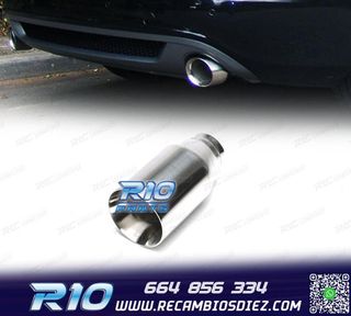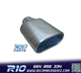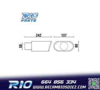Móvil: 664 856 334 - Referencia: ESC010312. COLA ESCAPE OVALADA ACERO INOX Especificaciones: Modelo: Ovalada Material: Acero inoxidable Medida: 242mm (largo), 137mm (ancho) Diámetro de entrada: 60mm Montaje. Instalación sencilla, sujección mediante tornillo o punto de soldadura. Imagen. Dale un toque más deportivo al vehículo con esta cola de escape.