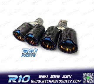 Móvil: 664 856 334 - Referencia: ESC010203. COLAS ESCAPE BMW LOOK M PERFORMANCE AZUL CARBONO Especificaciones: Modelo: Look M Performance Lado de montaje: Ambos lados Tipo de salida: Doble Color: Azul / Carbono Diámetro de entrada: Interior: 60 mm Exterior: 63 mm Diámetro cada salida exterior: 89 mm Largo: 250 mm Ancho total: 190 mm Montaje. Fácil instalación sin modificar nada en el vehículo. Kit completo. Incluye las 2 colas de escape listas para instalar. Estos no son productos originales de la marca BMW. El artículo ofrecido, solo es compatible para los modelos de veh?