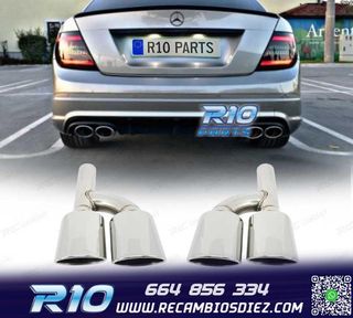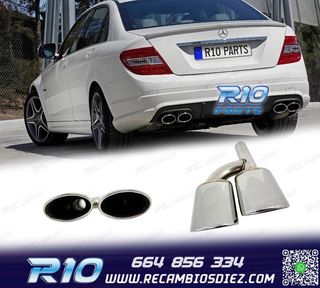 Móvil: 664 856 334 - Referencia: CRC011259. COLAS ESCAPE MERCEDES CLASE C W204 07-15 LOOK AMG 50X100 Valido para: Mercedes Benz Clase C W204 (2007-2015) Sedan / Coupe Especificaciones: Modelo: Look AMG C63 Lado de montaje: Ambos lados Tipo de salida: Doble Acero inox Color: Cromo Longitud: 320 mm Ancho: 270 mm Diámetro de la tubería terminal: 50 mm Montaje. Fácil instalación sin modificar nada en el vehículo. Kit completo. Incluye las 2 colas de escape listas para instalar. Estos no son productos originales de la marca MERCEDES. El artículo ofrecido, solo es compatible para l