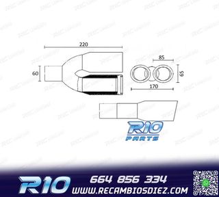 Referencia: AMP12031 Acabado en acero inoxidable. Fijación: tornillo/soldar. Diámetro de entrada: 61 int./63 ext. mm. Diámetros de salida: 90x70 mm. Largo total: 240 mm. Acabado en dos salidas rectangulares inclinadas. Somos AMP. Somos un equipo de técnicos serio y experto, con un gran catálogo online en nuestra web. Ofrecemos 2 años de garantía, y todos nuestros artículos son nuevos. Despachamos envíos en 24/48h a toda España, por la compañía MRW. Le resolvemos todas sus dudas, tanto por llamada telefónica como por WhatsApp. escape, embellecedor, cola, silencioso, bombo, downpipe, colector, supresor, escapes, embelleced...