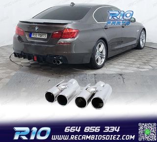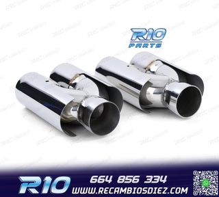 Móvil: 664 856 334 - Referencia: ESC010407. COLAS ESCAPE BMW E60 E61 E90 E91 E92 E93 F10 F11 F30 F31 F12 F13 LOOK M CROMADO Válido para: BMW Serie 3 E90 E91 (2005-2012) BMW Serie 3 E92 E93 (2006-2014) BMW Serie 3 F30 F31 (2011-2018) BMW Serie 5 E60 E61 (2003-2010) BMW Serie 5 F10 F11 (2010-2017) BMW Serie 6 F12 F13 F06 (2011-2018) Solo apto con difusor look M Especificaciones: Modelo: Look M Lado de montaje: Ambos lados Tipo de salida: 2 X Doble Color: Cromado Montaje. Fácil instalación sin modificar nada en el vehículo. Kit completo. Incluye las 2 colas de escape