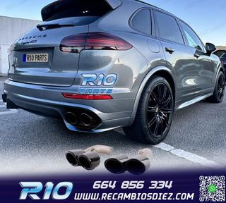 Móvil: 664 856 334 - Referencia: ESC010416. COLAS ESCAPE PORSCHE CAYENNE 92A 14-17 LOOK GTS NEGRO Válido para: Porsche Cayenne 92A (2014-2017) Facelift Especificaciones: Modelo: Look GTS Lado de montaje: Ambos lados Tipo de salida: 2 x Doble Color: Negro Montaje. Fácil instalación sin modificar nada en el vehículo. Kit completo. Incluye las 2 colas de escape listas para instalar. Estos no son productos originales de la marca PORSCHE. El artículo ofrecido, solo es compatible para los modelos de vehículos descritos.