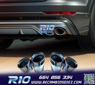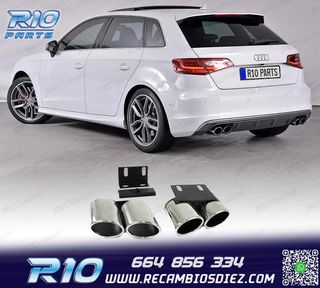 Móvil: 664 856 334 - Referencia: ESC010314. COLAS ESCAPE AUDI A3 8V 13- LOOK S CROMO Válido para: Audi A3 8V (2013-) No para modelos 1.8 / 2.0 TFSI Especificaciones: Modelo: Look S Lado de montaje: Ambos lados Tipo de salida: 2 x doble Color: Cromado Montaje. Fácil instalación sin modificar nada en el vehículo. Kit completo. Incluye las 2 colas de escape listas para instalar. Estos no son productos originales de la marca AUDI. El artículo ofrecido, solo es compatible para los modelos de vehículos descritos.