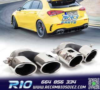 Colas de escape Mercedes W177 / V177 Look A45. Gran calidad Este producto sólo es válido para el paragolpes o el difusor A45. Se pueden acoplar al escape original, cambiando el look. No cambian el sonido. Estos no son productos originales de la marca MERCEDES. El artículo ofrecido solo es adecuado para los modelos de vehículos descritos.