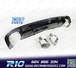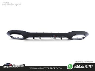 DIFUSOR TRASERO NEGRO BRILLO CON COLAS SIMPLES CROMADAS PARA MERCEDES CLASE A W177