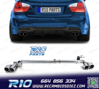 Móvil: 664 856 334 - Referencia: ESC010219. KIT CONVERSIÓN ESCAPE BMW E90 E91 LOOK M DOBLE AMBOS LADOS Válido para: BMW Serie 3 E90 E91 (2005-2012) Berlina / Touring Motorizaciones: 323 325 328 330 Solo válido para vehículos con pack M sin enganche de remolque Especificaciones: Look M Material: Fabricado en acero inoxidable de alta calidad Montaje. Instalación sencilla, no requiere soldadura. Imagen. Dale un toque más deportivo al vehículo con esta cola de escape. Estos no son productos originales de la marca BMW. El artículo ofrecido, solo es compatible para los modelos de veh