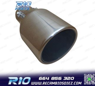 Móvil: 664 856 320 - Referencia: ESC000297. COLA ESCAPE REDONDA 65MM ACERO INOX Especificaciones: Modelo: Redonda Material: Acero inoxidable Medida: 145 mm (largo), 65 mm (ancho) Diámetro de entrada: 65 mm Montaje. Instalación sencilla, sujección mediante tornillo o punto de soldadura. Imagen. Dale un toque más deportivo al vehículo con esta cola de escape.