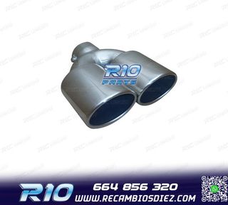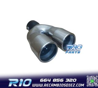 Referencia: AMP12764 Kit compuesto por dos colas de escape dobles de acero inoxidable Para montaje en ambos lados del vehículo, izquierdo y derecho. - Acabado negro brillante -Salida inclinada. -Acero inoxidable. -Fijación: tornillo/soldadura. -Diámetro de entrada: 61 mm -Diámetro de salida 89mm. -longitud 240 mm. Somos AMP. Profesionales a su disposición, con un gran catálogo online en nuestra web. Solo vendemos material nuevo, y ofrecemos siempre 2 años de garantía. Enviamos por MRW a toda España en 24/48h. Le atendemos sin compromiso, no dude en contactarnos por WhatsApp o teléfono. escape, embellecedor, cola, sile...