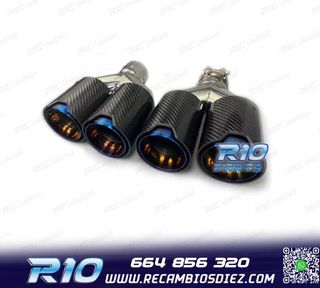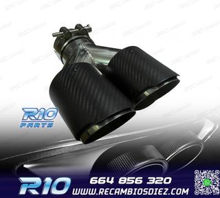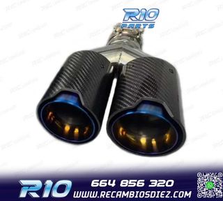 Móvil: 664 856 320 - Referencia: ESC010203. COLAS ESCAPE BMW LOOK M PERFORMANCE AZUL CARBONO Especificaciones: Modelo: Look M Performance Lado de montaje: Ambos lados Tipo de salida: Doble Color: Azul / Carbono Diámetro de entrada: Interior: 60 mm Exterior: 63 mm Diámetro cada salida exterior: 89 mm Largo: 250 mm Ancho total: 190 mm Montaje. Fácil instalación sin modificar nada en el vehículo. Kit completo. Incluye las 2 colas de escape listas para instalar. Estos no son productos originales de la marca BMW. El artículo ofrecido, solo es compatible para los modelos de veh?