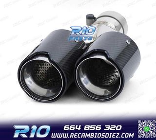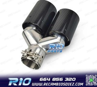 Móvil: 664 856 320 - Referencia: CRC011792. COLA ESCAPE DOBLE BMW M PERFORMANCE CARBONO CROMO IZQ Especificaciones: Modelo: Look M Performance Lado de montaje: Izquierda Tipo de salida: Doble Color: Cromo / Carbono Diámetro de entrada: Interior: 60 mm Exterior: 63 mm Diámetro cada salida exterior: 89 mm Largo: 250 mm Ancho total: 192 mm Montaje. Fácil instalación sin modificar nada en el vehículo. Kit completo. Incluye las 2 colas de escape listas para instalar. Estos no son productos originales de la marca BMW. El artículo ofrecido, solo es compatible para los modelos de vehí