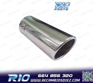 Móvil: 664 856 320 - Referencia: ESC010312. COLA ESCAPE OVALADA ACERO INOX Especificaciones: Modelo: Ovalada Material: Acero inoxidable Medida: 242mm (largo), 137mm (ancho) Diámetro de entrada: 60mm Montaje. Instalación sencilla, sujección mediante tornillo o punto de soldadura. Imagen. Dale un toque más deportivo al vehículo con esta cola de escape.