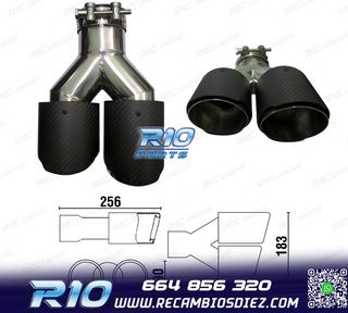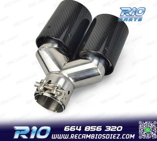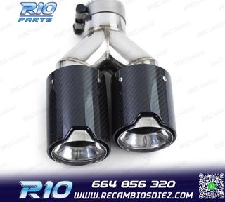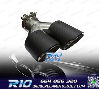 Móvil: 664 856 320 - Referencia: CRC011308. COLA ESCAPE DOBLE BMW M PERFORMANCE CARBONO CROMO DCH Especificaciones: Modelo: Look M Performance Lado de montaje: Derecha Tipo de salida: Doble Color: Cromo / Carbono Diámetro de entrada: Interior: 60 mm Exterior: 63 mm Diámetro cada salida exterior: 89 mm Largo: 250 mm Ancho total: 192 mm Montaje. Fácil instalación sin modificar nada en el vehículo. Kit completo. Incluye las 2 colas de escape listas para instalar. Estos no son productos originales de la marca BMW. El artículo ofrecido, solo es compatible para los modelos de vehíc