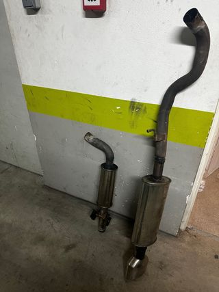 Línea de escape completa para motor 1.8T, desde el catalizador. Linea procedente de un leon mk1 1.8t 180cv con dos silenciadores duramas y cola tipo RS más grande que el de cupra original.